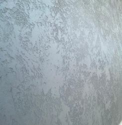 Etap 2 — Drugą warstwę tynku nakładamy gładko i równomiernie o grubości ok. 1-2 mm. Po nałożeniu ok. 2 m² na jeszcze mokrej powierzchni za pomocą pacy nierdzewnej tworzymy wzór poprzez miejscowe wydrapywanie lub odrywanie pacy od podłoża (aby uzyskać bardzo drobne nieregularne wżery, należy użyć wałka sznurkowego). Po kilku minutach (kiedy masa jest podeschnięta i „matowa”) wygładzamy nałożoną masę. Czynność tę wykonujemy lekko pacą najwygodniej poprzez tzw. żelazkowanie tak, aby uzyskać gładką płaszczyznę. Zbyt mocne wygładzanie lub użycie nieodpowiedniej jakości pacy może w konsekwencji doprowadzić do miejscowych zabrudzeń. W taki sam sposób wykonujemy kolejne fragmenty tynku, pamiętając, aby obszary dekoracji łączyć na mokro. Całość wykonanej dekoracji pozostawiamy do wyschnięcia na min. 24 godz.